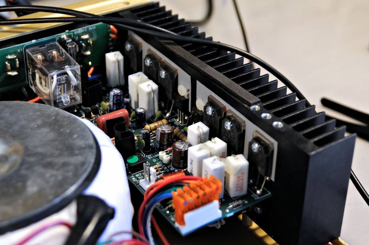 Za crossoverem "zaczynają" się dwie końcówki mocy, poprzedzone limiterami. Co ciekawe, limitery są fabrycznie ustawione na 50V RMS na wyjściu z końcówek mocy , co daje moc na obciążeniu 4Ohm około 625W !!!. końcówki są zbudowane w oparciu o tranzystory bipolarne. Może na Mosfet'ach było by łatwiej , ale tranzystory bipolarne dają tą "twardość" brzmienia i ich wybór jest na pewno godny uznania.